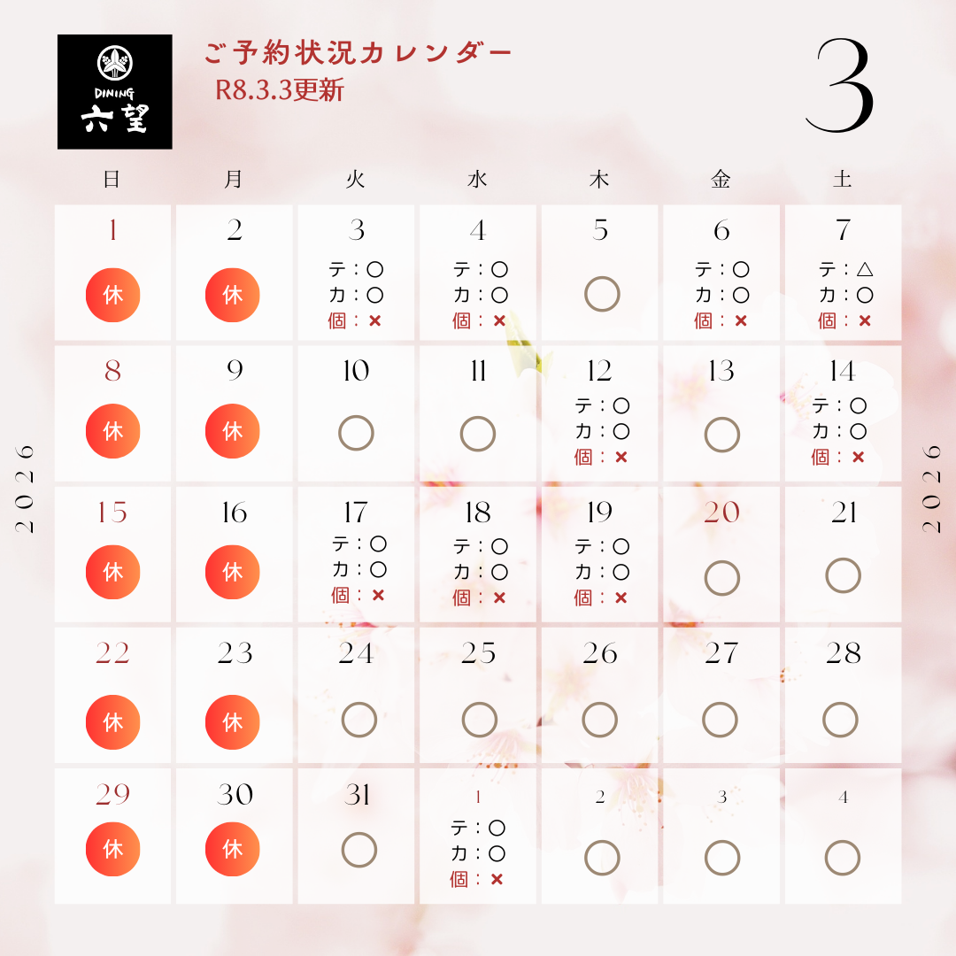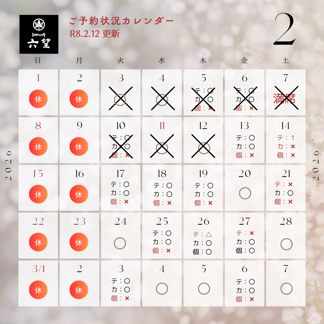 ※当店は2026年12月末をもちまして「"DINING六望としての営業スタイル" を終了」いたします。詳しくは以下のサイトへ☆
